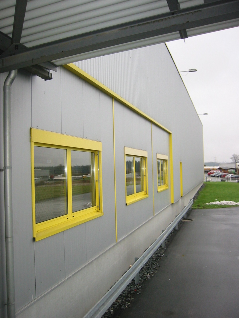 Bauort: Münchberg Bauherr: stöckel & grimmler KG Baudaten: GF 15.403 qm, BRI 126.174 cbm LPH: 1 - 9 - Neubau, später Umbau und Erweiterung einer Wellpappenfabrik mit Verwaltung